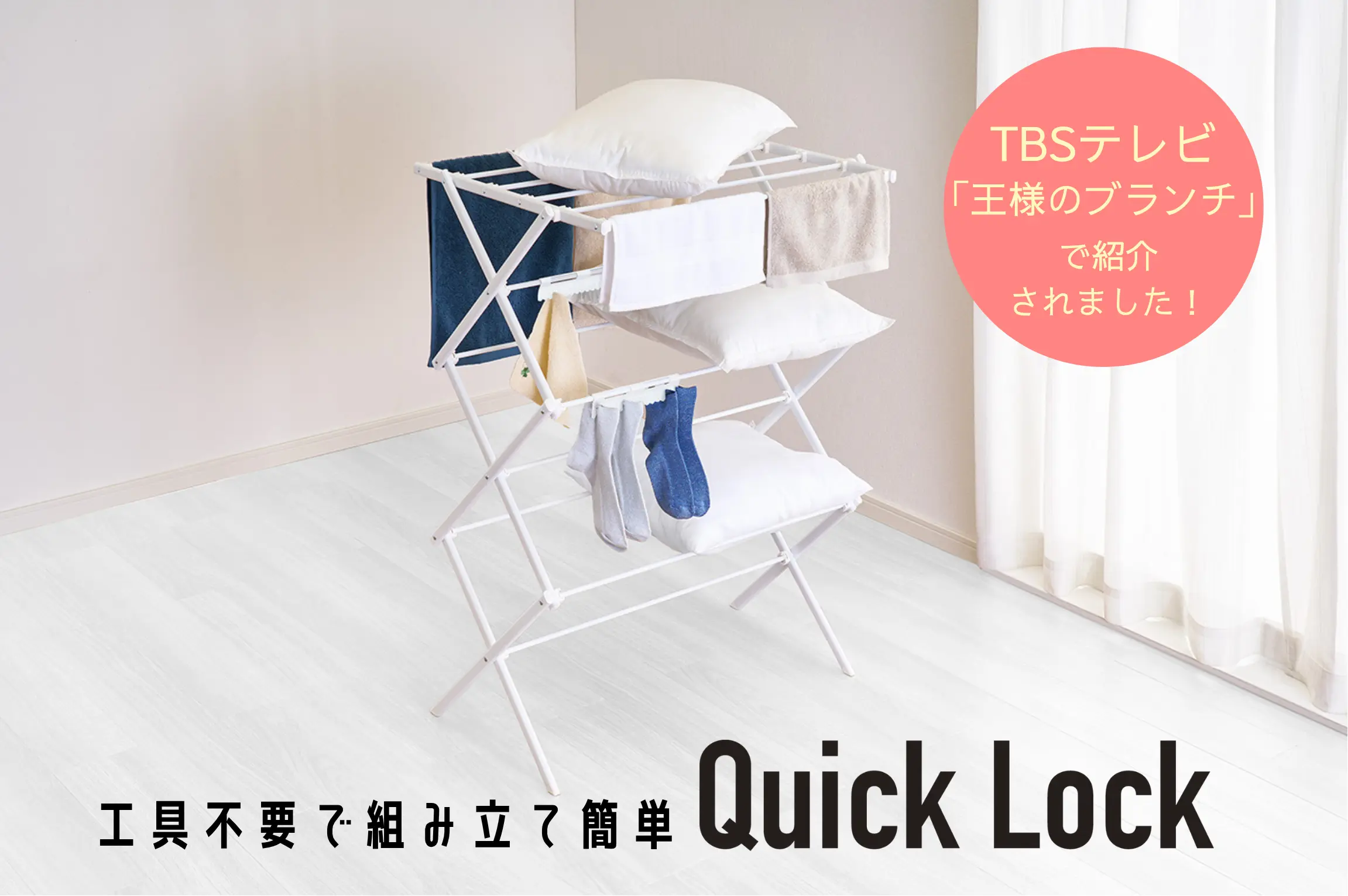弊社商品の『Quick Lock 平干しもできる コンパクトスタンド物干し』が紹介されました。