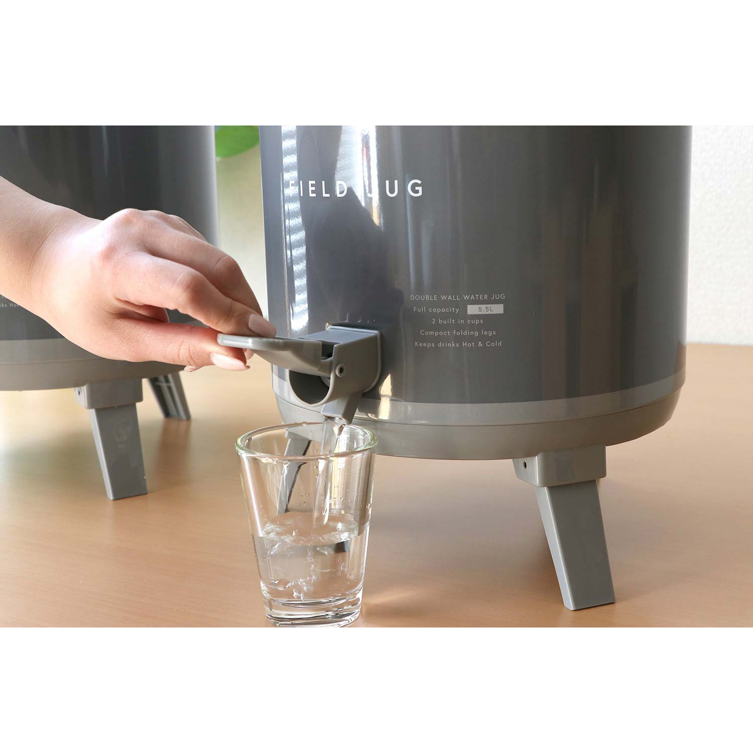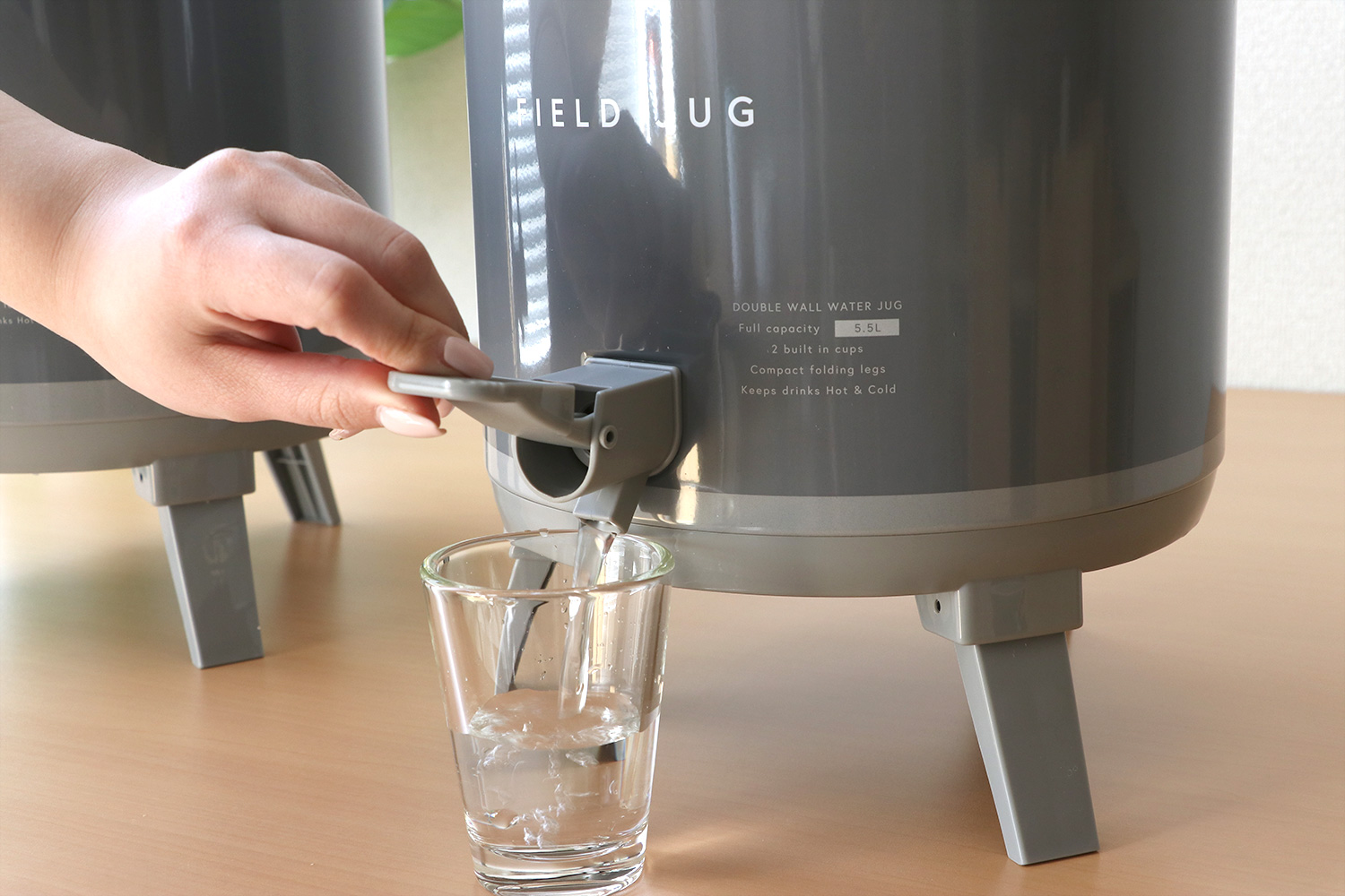 暮らしにもアウトドアにも馴染む落ち着いたデザインのウォータージャグ。