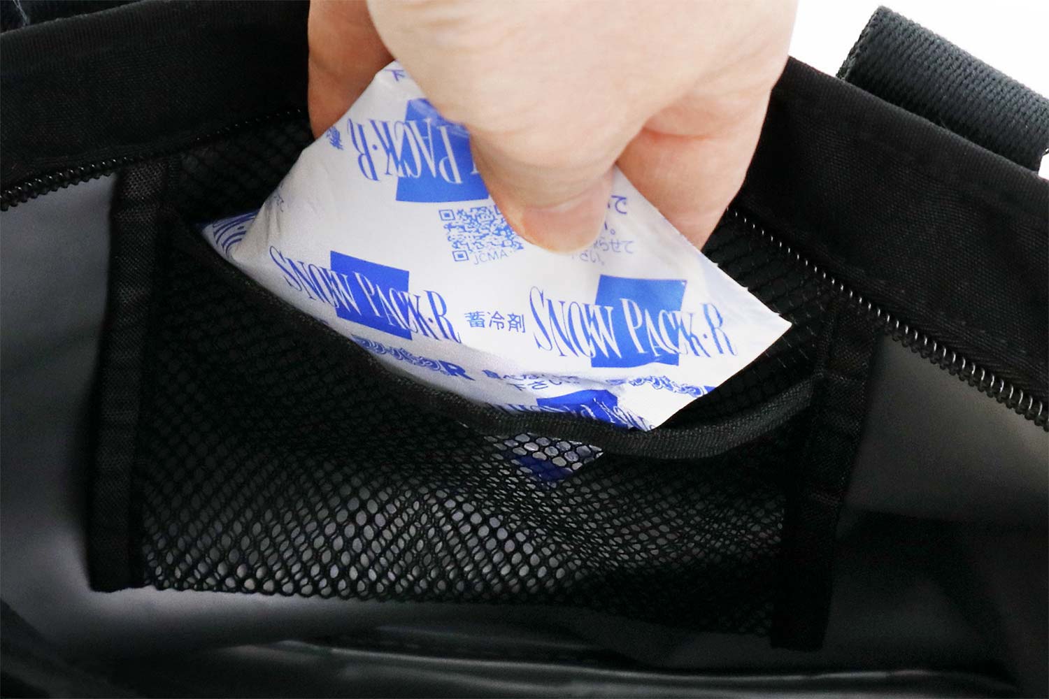 〇4層構造のSKUの内面には保冷剤ポケット付き。